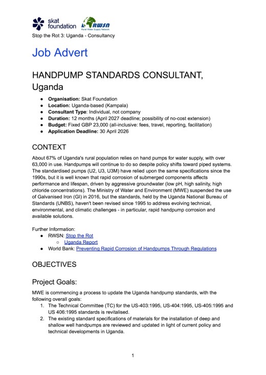 HANDPUMP STANDARDS CONSULTANT, Uganda