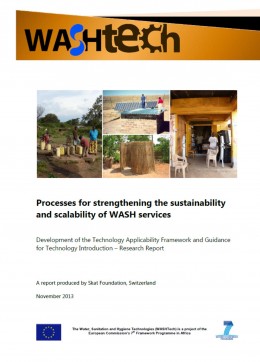 OLSCHEWSKI, A. and CASEY, V. (2013) Processes for strengthening the sustainability and scalability of WASH services. Development of the Technology Applicability Framework and Guidance for Technology Introduction – Research Report , Skat Foundation and WaterAid UK , WASHTech Project , St Gallen, Switzerland